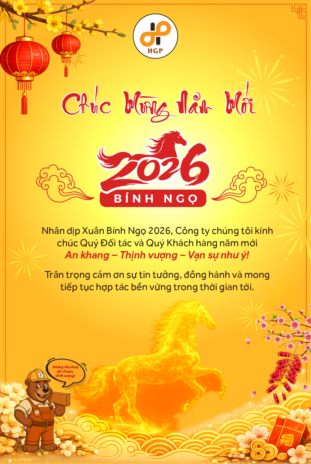 Nhân dịp Xuân Bính Ngọ 2026, Công ty chúng tôi kính chúc Quý Đối tác và Quý Khách hàng năm mới An khang – Thịnh vượng – Vạn sự như ý!