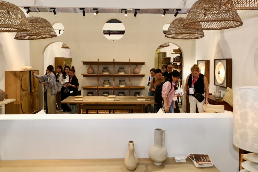 | Các nhà mua hàng quốc tế tham quan sản phẩm tại Hội chợ Xuất khẩu đồ gỗ và nội thất (HawaExpo 2026) được tổ chức tại Thành phố Hồ Chí Minh ngày 4-3. Ảnh: Vương Thế |