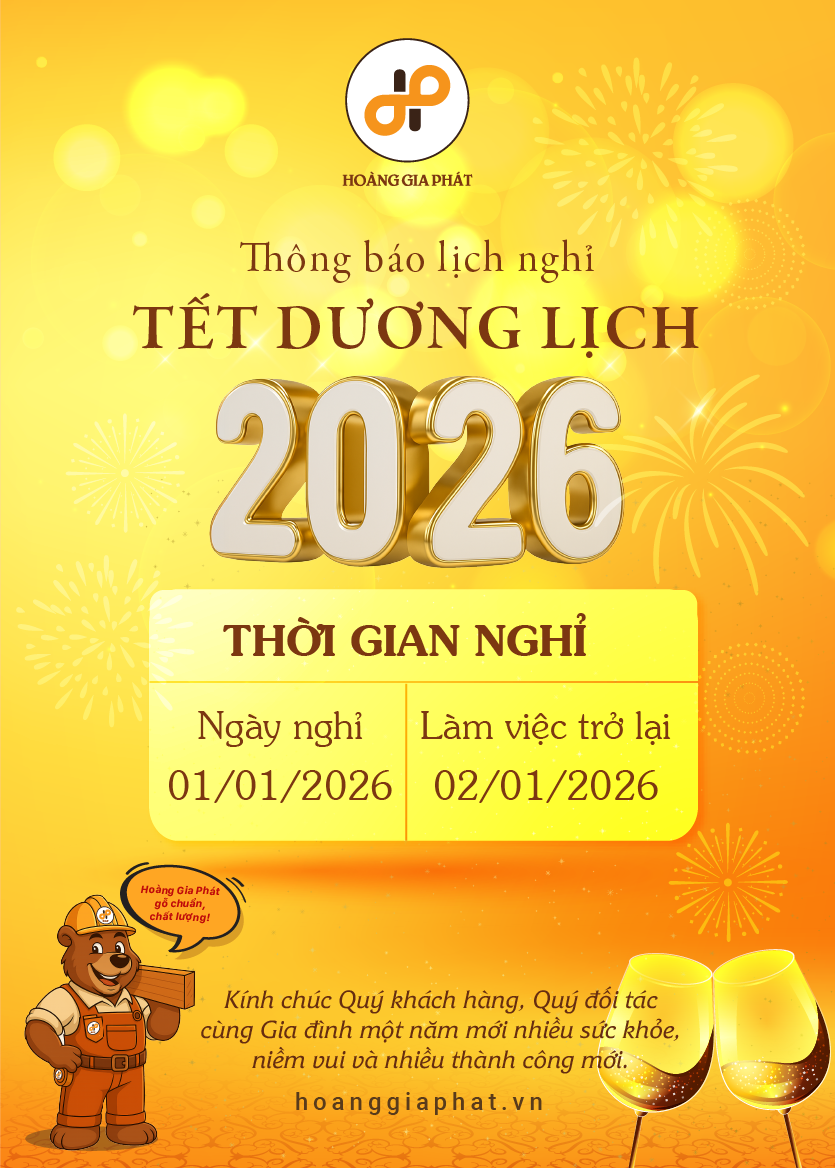 Công ty Hoàng Gia Phát xin thông báo đến Quý khách hàng, đối tác lịch nghỉ Tết Dương lịch 2026 cụ thể như sau: