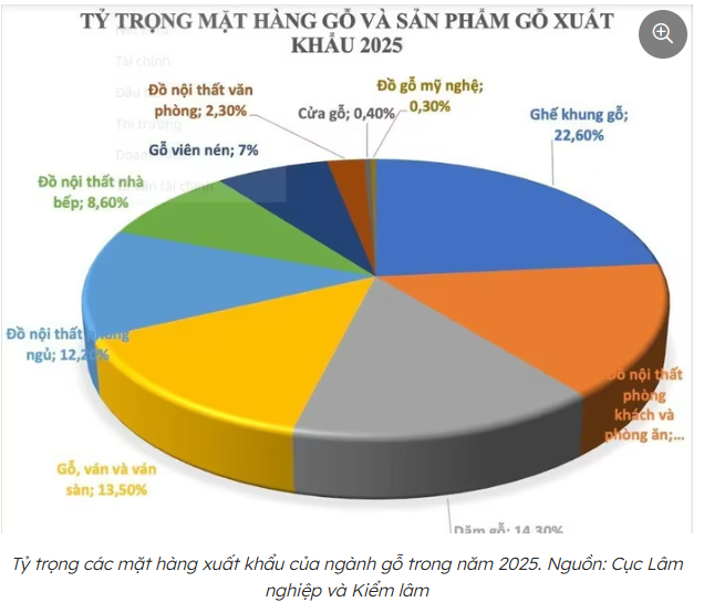 Thống kê từ Cục Lâm nghiệp và Kiểm lâm (Bộ Nông nghiệp và Môi trường) cho thấy, xuất khẩu gỗ và sản phẩm gỗ của Việt Nam tiếp tục khẳng định vị thế trong nhóm 5 quốc gia hàng đầu thế giới. Riêng nhóm sản phẩm chế biến sâu (furniture – đồ gỗ nội/ngoại thất), với 11,7 tỷ kim ngạch xuất khẩu, Việt Nam đứng thứ hai thế giới, chỉ sau Trung Quốc.